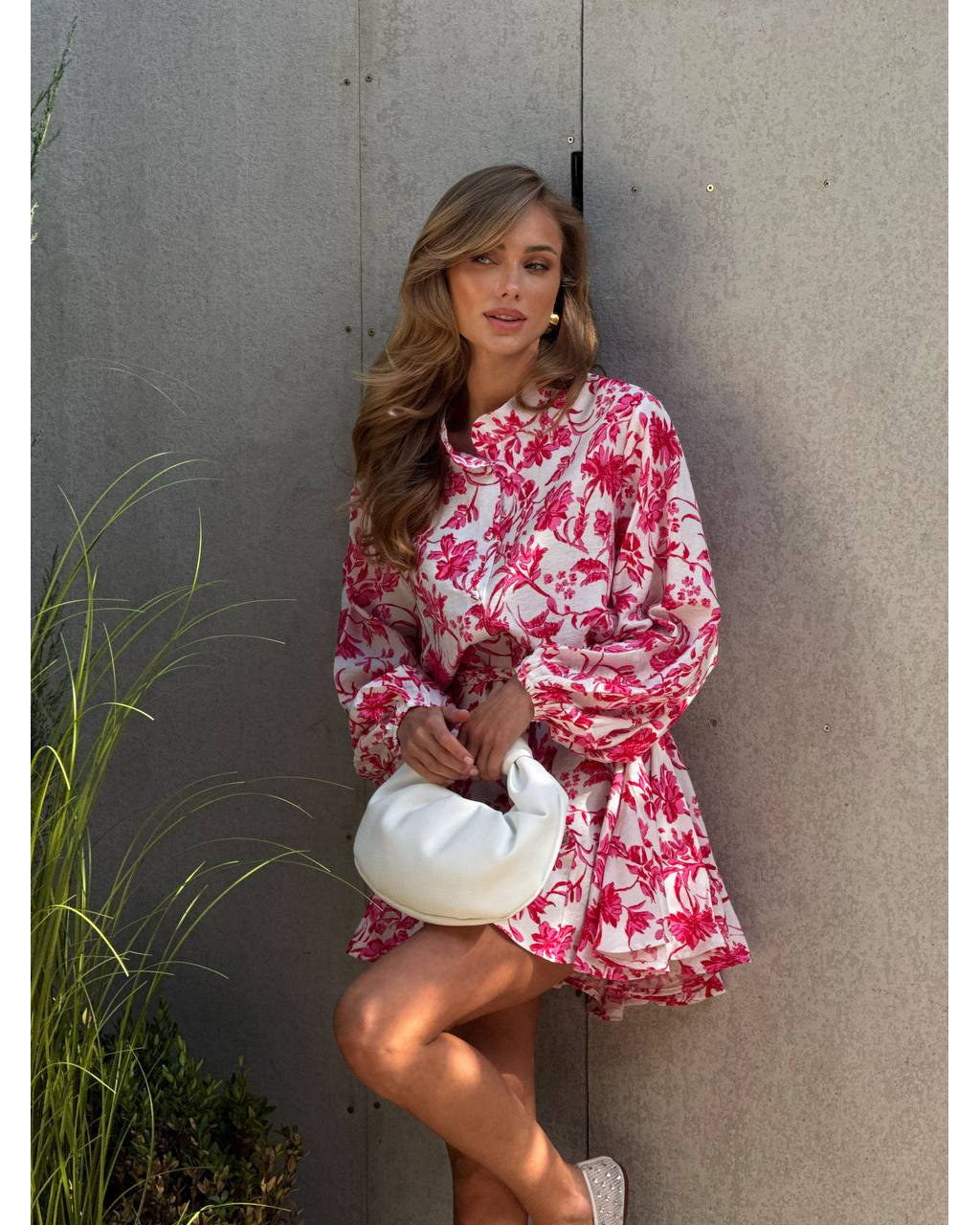 Rochie scurtă din bumbac creponat, cu imprimeu floral delicat și croială lejeră, ce evidențiază feminitatea într-un mod natural. Mânecile voluminoase și talia ușor marcată oferă un echilibru perfect între confort și eleganță.